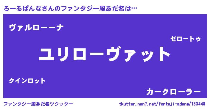 | 女子向けラノベタイトル風あだ名 | 『ろーるぱんなの玉の輿計画!』 |