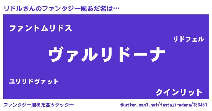 | 意味不明あだ名 | 『住所不定無職リドル(6歳)』 |