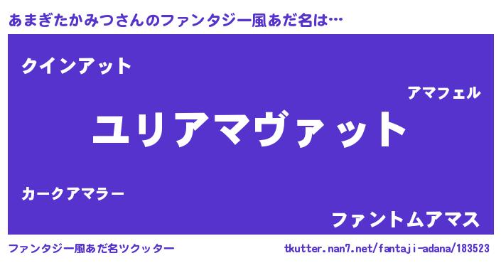 | 欧米人風あだ名 | 『アンジェラ・あまぎたかみつ』 |