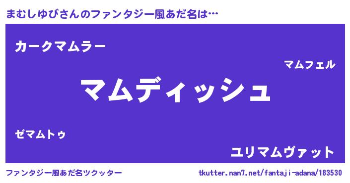 | 男性向けラノベタイトル風あだ名 | 『まむしゆびという概念が存在しない退屈な世界 』 |