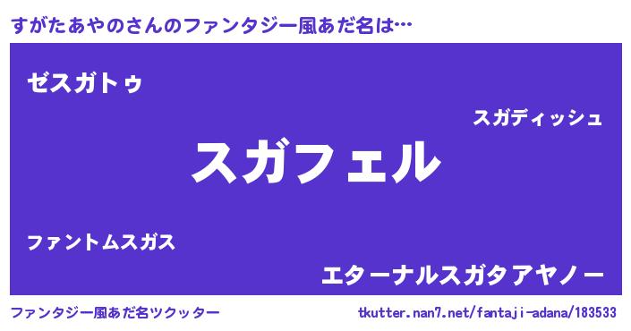 | 男性向けラノベタイトル風あだ名 | 『スガタアヤノアートオンライン』 |