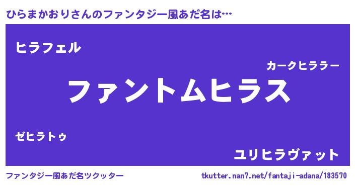 | ヒーロー風カッコイイあだ名 | 『炎刃騎士ヒラ』『スーパーヒラマカオリ』 |