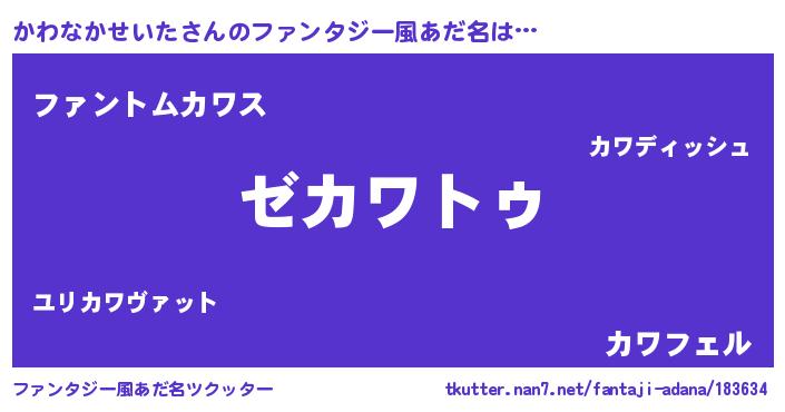 | 意味不明あだ名 | 『自称かわなかせいた』 |