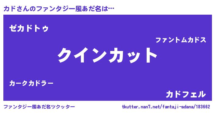 | ヒーロー風カッコイイあだ名 | 『慈愛の使者カド』『最強戦士カド』 |