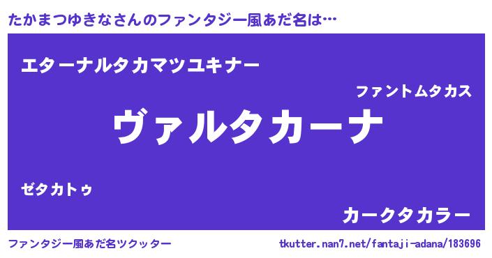 | 男性向けラノベタイトル風あだ名 | 『魔弾の王とたかまつゆきな』 |