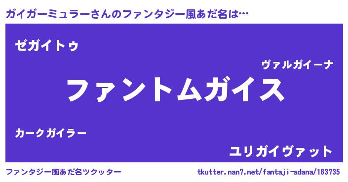 | 意味不明あだ名 | 『とにかく怪しいガイガーミュラー』 |