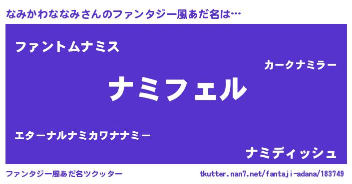 | ポケモン風あだ名 | 『ナミチュウ』『ヒナミカワナナミ』 |