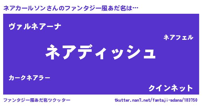 | ヘコむあだ名 | 『ネアカールソン(笑)』『ネアにゅー』 |