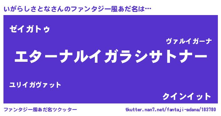 | 女子向けラノベタイトル風あだ名 | 『いがらしさとなの雑貨屋さん』 |