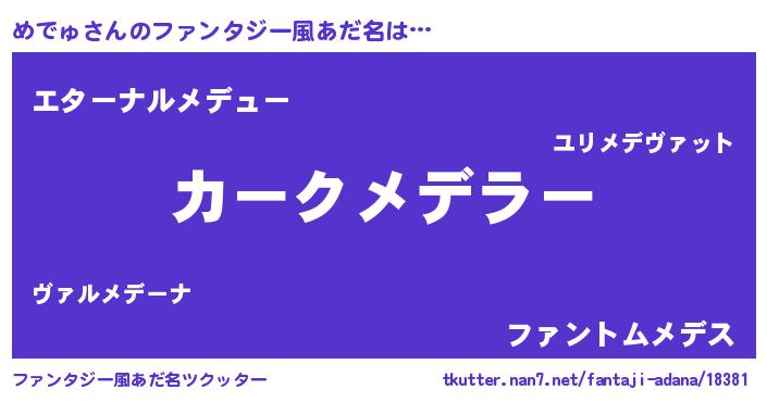 | 男性向けラノベタイトル風あだ名 | 『めでゅに滅ぼされるだけの簡単なお仕事です』 |