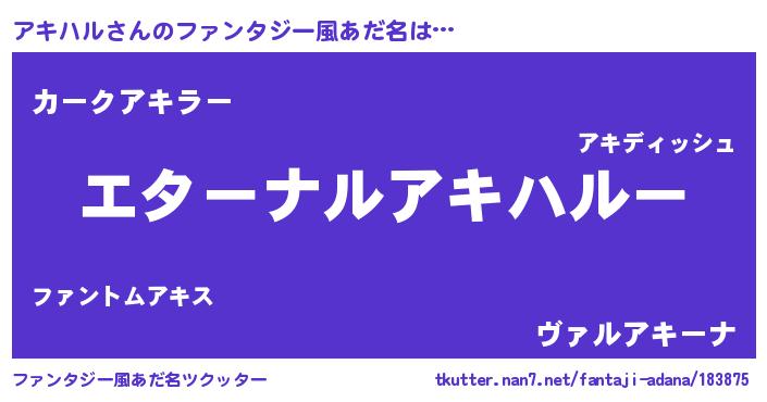 | 欧米人風あだ名 | 『アキハルクリステル』 |