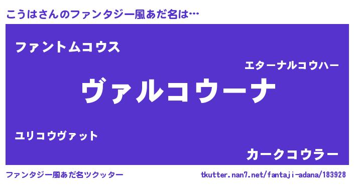 | 男性向けラノベタイトル風あだ名 | 『魔弾の王とこうは』 |