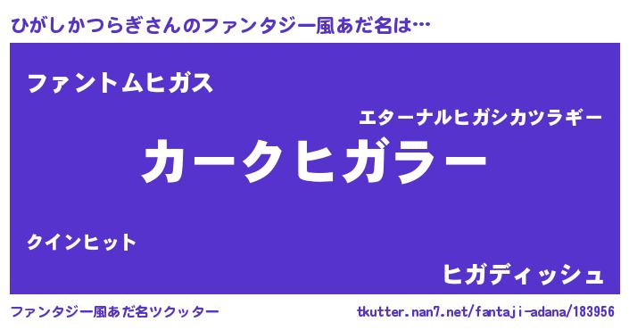| ヒーロー風カッコイイあだ名 | 『黄金騎士ヒガ』『ネオヒガシカツラギ』 |