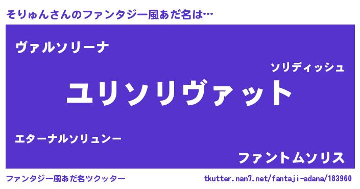 | 男性向けラノベタイトル風あだ名 | 『転生したらそりゅんだった件』 |