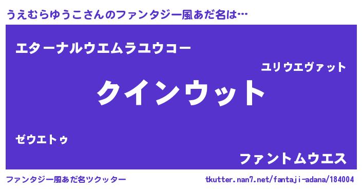 | 欧米人風あだ名 | 『アンジェラ・うえむらゆうこ』 |