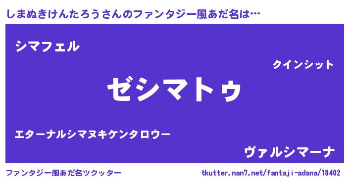 | 意味不明あだ名 | 『自称しまぬきけんたろう』 |