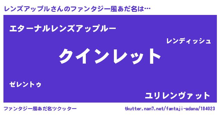 | 男性向けラノベタイトル風あだ名 | 『おまえをオタクにしてやるから、俺をレンズアップルにしてくれ! 』 |