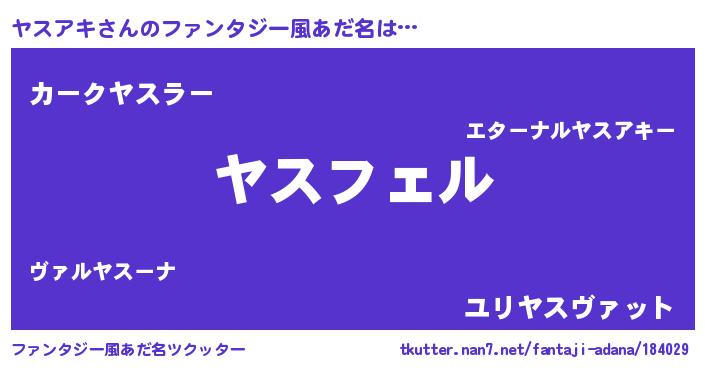 ヤスアキさんのファンタジー風あだ名をツクッター!