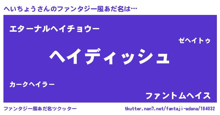 | 意味不明あだ名 | 『永久保存へいちょう』『自称へいちょう』 |