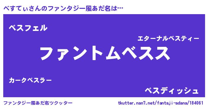 | ヘコむあだ名 | 『べすっぺ』『べすにゅー』 |