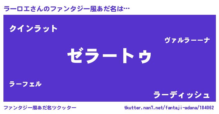 | 意味不明あだ名 | 『自称ラーロエ』『永久保存ラーロエ』 |