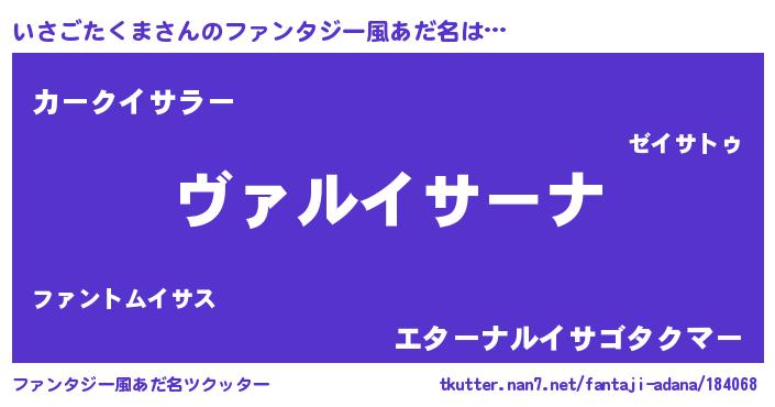 | 男性向けラノベタイトル風あだ名 | 『魔弾の王といさごたくま』 |