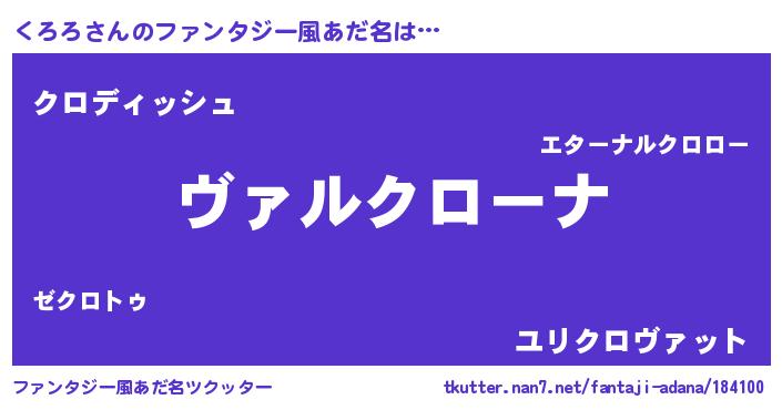 | 男性向けラノベタイトル風あだ名 | 『魔弾の王とくろろ』 |