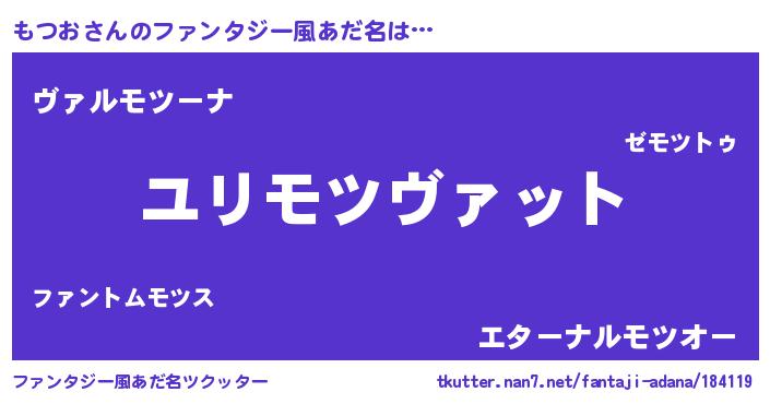 | 男性向けラノベタイトル風あだ名 | 『転生したらもつおだった件』 |