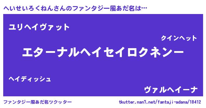 | 意味不明あだ名 | 『へいせいろくねんフォーエバー』 |