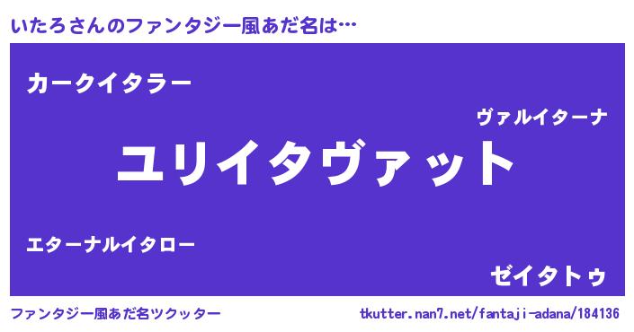 | 男性向けラノベタイトル風あだ名 | 『イタロスレイヤー』『魔弾の王といたろ』 |