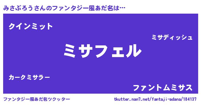 | 意味不明あだ名 | 『ペロリンみさぶろう』『自称みさぶろう』 |