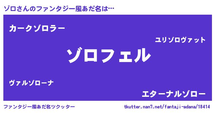 | ヒーロー風カッコイイあだ名 | 『スーパーゾロ』『ウルトラゾロマン』 |