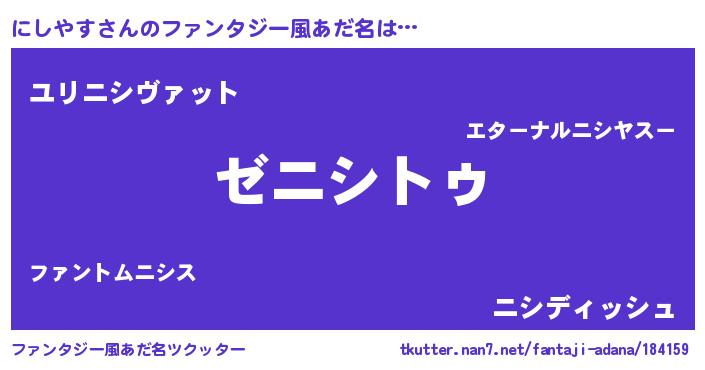 | 男性向けラノベタイトル風あだ名 | 『魔法科高校のにしやす』 |