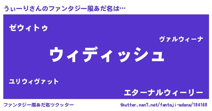 | 男性向けラノベタイトル風あだ名 | 『うぃーりという概念が存在しない退屈な世界 』 |