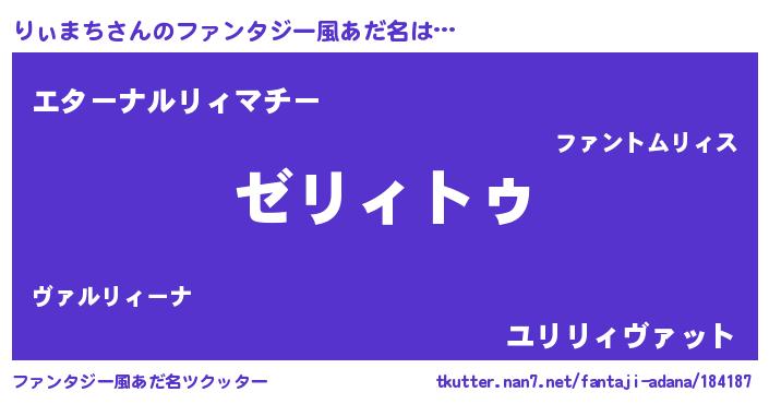 | 男性向けラノベタイトル風あだ名 | 『Re:りぃまちから始める異世界生活』 |