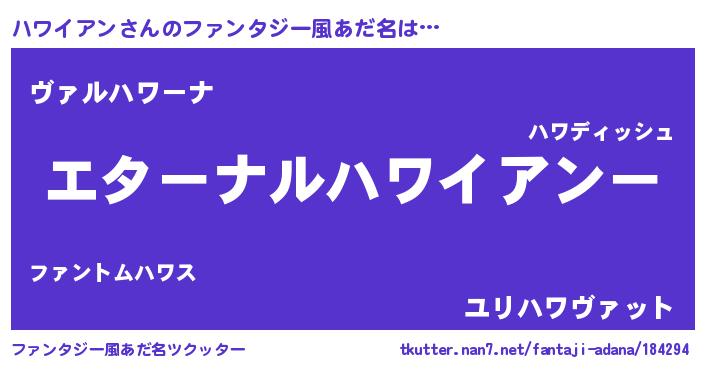 | 意味不明あだ名 | 『ハワイアンフォーエバー』 |