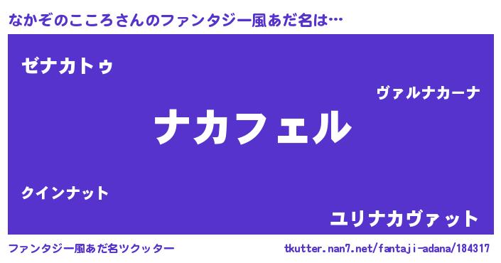 | 男性向けラノベタイトル風あだ名 | 『ナカゾノココロアートオンライン』 |