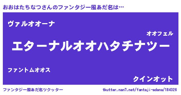 | 欧米人風あだ名 | 『おおはたちなつクリステル』 |