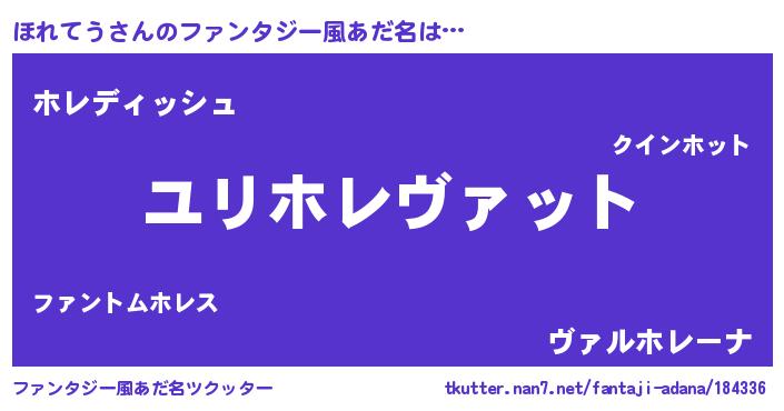 | 男性向けラノベタイトル風あだ名 | 『ほれてう~年齢イコール彼女いない歴の魔法使い~』 |