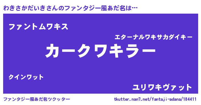 | 欧米人風あだ名 | 『わきさかだいき・ステッグマイヤー』 |