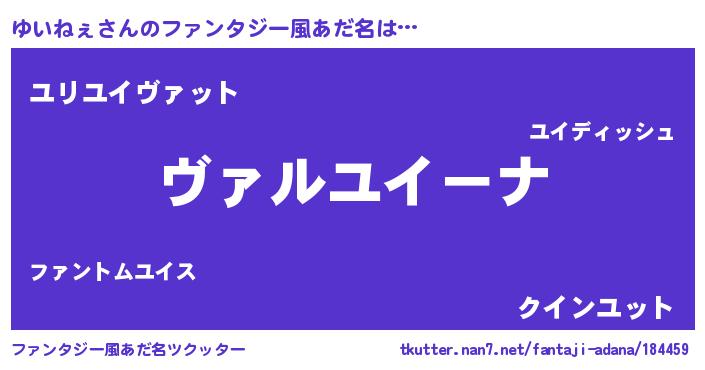 | 男性向けラノベタイトル風あだ名 | 『この素晴らしい世界にゆいねぇを!』 |