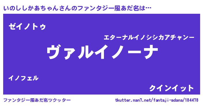 | 男性向けラノベタイトル風あだ名 | 『魔弾の王といのししかあちゃん』 |