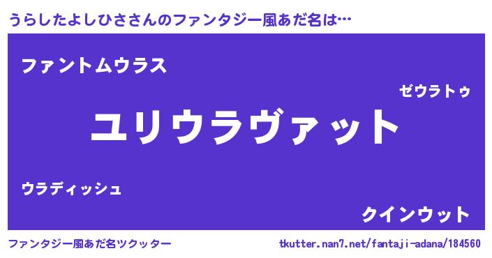 | ポケモン風あだ名 | 『ウラキング』『ヒウラシタヨシヒサ』 |