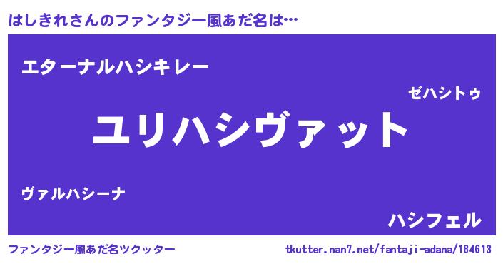 | 意味不明あだ名 | 『なめこ科はしきれ属』『自称はしきれ』 |