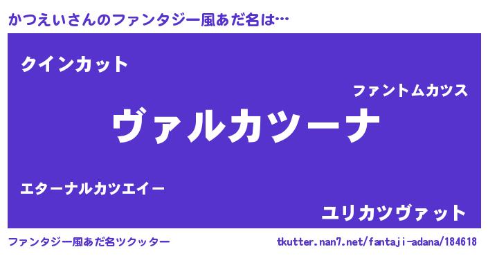 | 男性向けラノベタイトル風あだ名 | 『魔弾の王とかつえい』 |