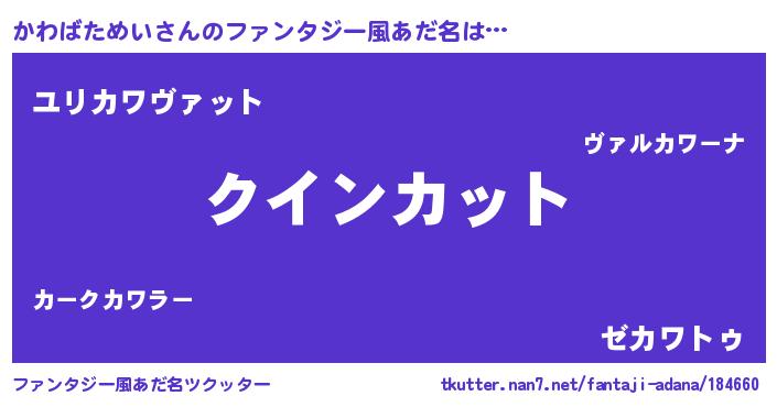 | ヘコむあだ名 | 『かわっ子』『かわばためい(遠い目)』 |