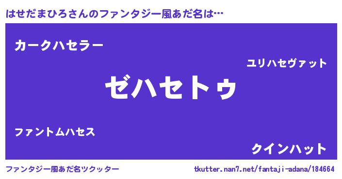 | 男性向けラノベタイトル風あだ名 | 『Re:はせだまひろから始める異世界生活』 |