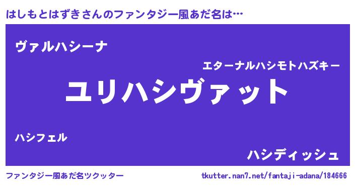 | 男性向けラノベタイトル風あだ名 | 『ハシモトハズキスレイヤー』 |