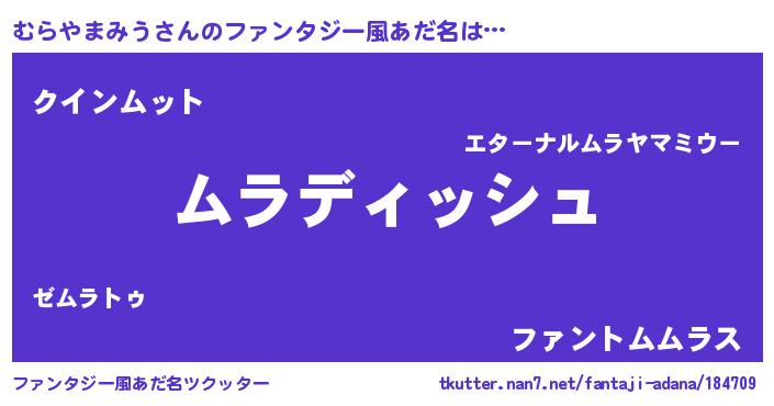 | ヒーロー風カッコイイあだ名 | 『ネオムラヤマミウ』『幻影騎士ムラ』 |