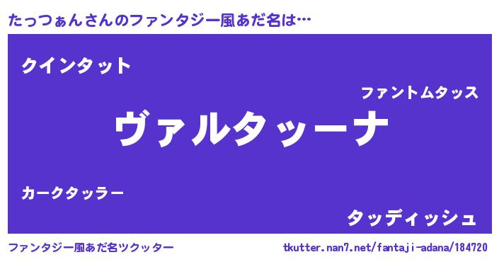 | 女子向けラノベタイトル風あだ名 | 『乙女ゲームの破滅フラグしかない悪役たっつぁんに転生してしまった…』 |